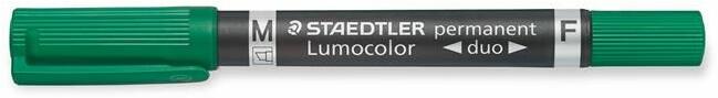 A Lumocolor termékcsalád alkoholos markerei igazán intenzív színeket biztosítanak a tartós jelöléshez gyakorlatilag bármilyen felületen. -kétvégű marker könnyen kezelhetõ méretben -kiváló vízálló tulajdonságú és nem kenõdik el -másodpercek alatt szárad, így balkezeseknek is ajánlott -intenzív színek -enyhe illatú -a fekete szín fényálló -PP tolltest és kupak g