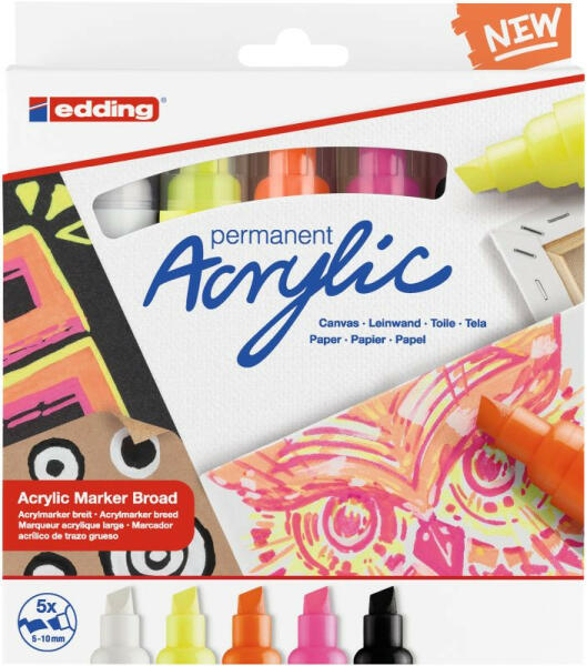 Akril marker világos vagy sötét felületekre történő festéshez, ideális olyan anyagokhoz, mint a vászon vagy a festőpapír. Akril marker világos vagy sötét felületekre történő festéshez, ideális olyan anyagokhoz, mint a vászon vagy a festőpapír. - A vágott írócsúcs vonalvastagsága 5-10 mm. A kiváló minőségű, pigmentált, vízbázisú akrilfesték száradás után re