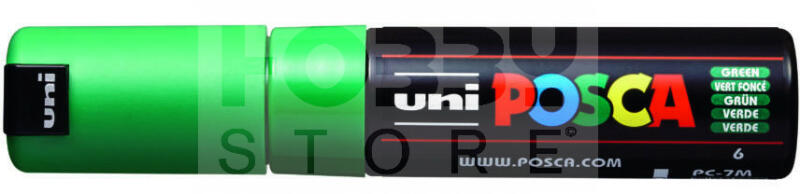UNI POSCA PC-7M ZÖLD színű dekormarker-filctoll 41950U Kiváló minőségű, erős heggyel rendelkező akril dekormarker . Használható szinte bármilyen felületen legyen az fa, fém, papír, üveg, textil, kő, műanyag. . Az Uni Posca filctollak különleges finomságú akrilfestéket tartalmaznak. A Posca akril filcek színezésre és rajzolásra is alkalmasak. Bel és kültéren is haszn