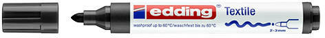 Textiliák pl. : pamut, selyem, vászon stb. , ruhanázat pl. : tornacipő, póló, táska stb. dekorálására, írására, jelölésére alkalmas marker. Kerekített csúccsal, vízbázisú festékkel töltve, rendkívüli színtartóssággal és magas fényállósággal. A dekoráció rögzítése gőzmentes bevasalással történik. Rögzítés után 60 °C-ig mosható. Vonalvastagság: 1-3 mm