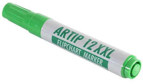 Flipchart tömbök és egyéb papírívek feliratozására alkalmas, vízbázisú festékkel töltött marker. A festék a papír másik oldalára nem üt át. Megnövelt élettartam a nagyobb méretű testnek köszönhetően. Vágott csúccsal. Vonalvastagság: 1-4 mm. Katalóguskód: 19138