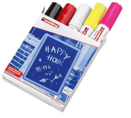 Marker vízbázisú, semleges illatú krétafestékkel. Alkalmas üvegre és szinte minden típusú nem porózus felületre. Vízben oldódó tinta, nedves ruhával törölhető. A csúcs le van vágva, a pálya szélessége 4-15 mm. 5 db-os készletben szállítjuk.