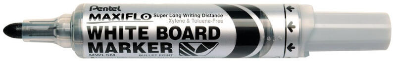 Táblamarker 2,5 mm, kerek, PENTEL MAXIFLO fekete Professzionális társ a konferenciateremben, tanteremben. A Pentel Maxiflo táblafilccel nem lehet kizökkenni az írásból. A pumpás megoldással kivédheti a gravitáció hatását, akár fejjel lefelé is írhat. Csak nyomja meg a marker végében található gombot és írjon háromszor tovább, mint egy átlagos táblafilccel. Messziről is
