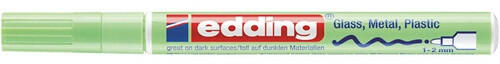 Lakkmarker Edding 751 pasztellzöld Fényes lakkmarker erősen fedő, tartós és elkenődésbiztos dekorációhoz sima, sőt sötét és átlátszó anyagokon is, pl. üveg, fém, műanyag és fényes papír A kerekített csúcs vonalvastagsága 1-2 mm A lakkszerű pigmenttinta gyorsan szárad, időjárásálló és rendkívül fény-és kopásálló Elérhető 22 színben. Megfelelő pótcsúcso