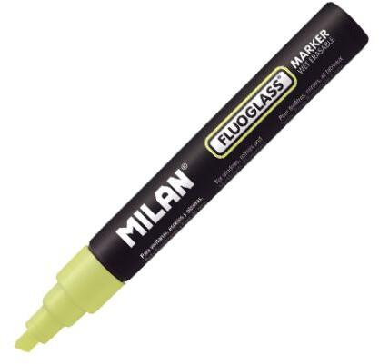 Jelölő sima, nem porózus felületekhez üvegen, táblán, vízálló felületeken és sötét színű kartonon. Könnyen törölhető. Közepes vastagságú ékíró hegy. Vízbázisú folyékony krétával töltve. Szárazon és nedvesen törölhető. Gazdag, élénk színek. Nyomszélesség: 2-4 mm. Szín: sárga.