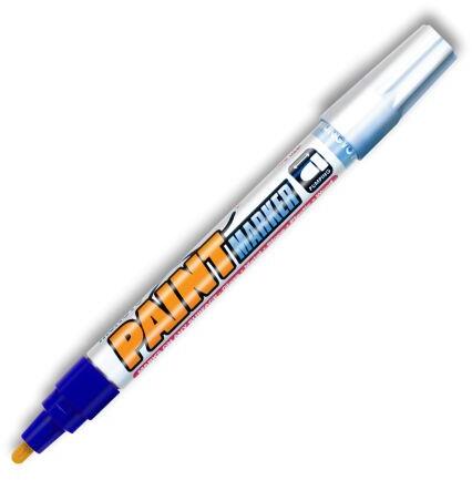 Olajjelölő kerek íróvéggel alumínium testben. Alkohol- és észter alapú tinta, amely száradás után olajfestékre emlékeztet. vízálló, kopásálló lábnyom szélessége: 2-5 mm vonal hossza: 450 m használható fémre, üvegre, műanyagra, fára, kőre Az EN71-3 szabványnak megfelelően. Nem tartalmaz xilolt. Használat előtt rázza fel és nyomja meg a hegyét.