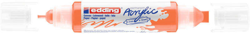AKRIL MARKER 2-3MM ÉS 5-10MM 3D KÉTVÉGŰ EDDING 5400 NEON NARANCSSÁRGA Kétoldalú edding 3D akril tubus egyedi effektusokhoz és sötét és világos felületekre történő festéshez, ideális olyan anyagokhoz, mint a vászon vagy a festőpapír. - A kétoldalú tubus két különböző írócsúccsal rendelkezik 2 - 3 mm és 5 - 10 mm vonalvastagságban. - A kiváló minőségű, pigmentá