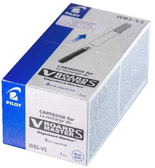 Pilot BeGreen V-Board Master S 12 db/csomag kék táblamarker betét Pilot BeGreen V-Board Master S táblamarker utántöltő tintapatron, 2,4 ml Folyamatos tintaáramlási rendszere miatt írásképe állandó minőségű az utolsó csepp tintáig! Könnyű letörölni, a tinta nyom nélkül eltűnik. Tinta színe: kék
