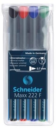 Alkoholos marker OHP, 0,7 mm, SCHNEIDER Maxx 222 F- vízálló és törlésbiztos- fóliára és minden sima felületre használható- gyorsan szárad- a színek élénkek és fényesek maradnak- a kupak színével megegyező tinta- vonalvastagság: 0,7 mm- tűhegyű Katalóguskód: 42336