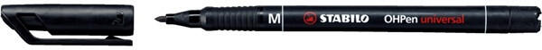 Stabilo OHPen 843 M fekete permanent marker - Szinte minden sima felületen használható - Vonalvastagság: 1 mm - Légáteresztő szeleppel ellátott kupak - Hosszú nyitva tarhatósági idő: kb. 24 óra - Szín: fekete