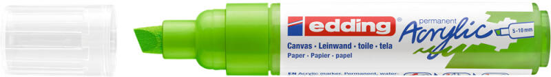 AKRIL MARKER 5-10 MM EDDING 5000 SÁRGÁSZÖLD D5 Akril marker világos vagy sötét felületekre történő festéshez, ideális olyan anyagokhoz, mint a vászon vagy a festőpapír. - A vágott írócsúcs vonalvastagsága 5-10 mm. - A kiváló minőségű, pigmentált, vízbázisú akrilfesték száradás után rendkívül tartós, átlátszatlan, fényálló és szagtalan. - A neon sárga szí