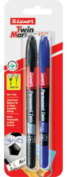Kettõs végű olajbázisú lakkmarker. Vékony és vastag, kerek heggyel. Vízálló, tartós színek. Nincs erõs szaga, beltéren és kültéren egyaránt jól használható. Számos felületen jól alkalmazható: fém, fekete gumi, üveg, papír, kerámia, műanyag, stb. Írásvastagság: 0,7-1,2 mm.