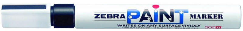 LAKKMARKER OLAJBÁZISÚ FEKETE ZEBRA Olajbázisú tintával töltött lakkfilc, szeleppel szabályozott íróheggyel. Bármilyen felületen alkalmazható, gyönyörű, fényes felületet képez, mely maradandó jelölést biztosít. Írásvastagság: 3 mm 10db/gyűjtő, 1000db/karton. Katalóguskód: 865