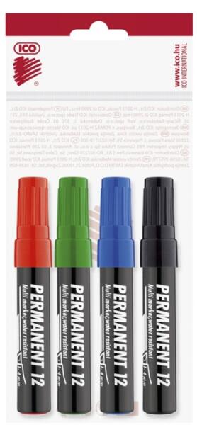 Műanyag, üveg, fém, fa, illetve szinte minden felület feliratozására, jelölésére alkalmas, alkoholbázisú festékkel töltött permanent marker. Írásképe száradás után törlés- és vízálló. Vágott csúccsal, klipszes kupakkal. 4 alapszínben. Vonalvastagság: 1-4 mm. Katalóguskód: 24644
