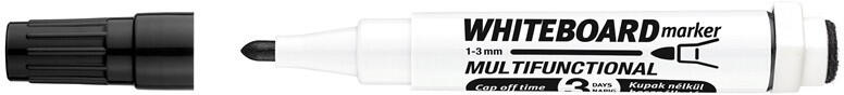 TÁBLAMARKER MARKERASER 3MM MÁGNESES, TÁBLATÖRLŐVEL MULTIFUNKCIÓS FEKETE ICO Multifunkciós táblamarker: - mágneses fehértáblára való írásra, rajzolásra. - speciális festékanyagának köszönhetően, néhány napig, kupak nélkül sem szárad be. -a kupakban elhelyezett mágnes révén, acél táblafelületeken rögzíthető. - az írás szárazon letörölhető, melyet a kupak vé