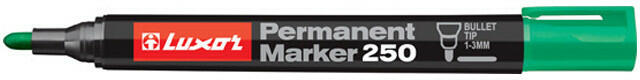 Gyorsan száradó színtartó festék, írásképe törlés- és vízálló, szinte minden felület feliratozására alkalmas. Luxor rostiron, Permanent Marker 250 B, kerek hegyű, 1-3 mm, zöld. Alkoholbázisú, kemény akril heggyel rendelkező, a legtöbb felületen használható marker. Ideális mindennapi irodai és otthoni használatra. Írásképe száradás után törlés és vízálló. X