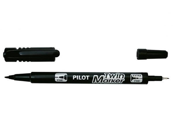 Pilot BeGreen Twin fekete marker - Két marker egyben, alkoholos, kéthegyű permanent marker - a 0,5 mm vastag hegy rostokból áll, a 0,3 mm-es hegy műanyag - Xylolt nem tartalmaz - 76,1%-ban újrahasznosított anyagokból készült - Szín: fekete