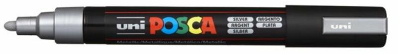 Dekormarker, 1,8-2,5 mm, UNI Posca PC-5M, ezüst (TUPC5ME) - az első titánoxidos nagy fedőképességű, vízbázisú marker - tintája száradás után vízálló, vegyileg nem aktív, tovább feliratozható felületet képez - alkosson egyéniségének megfelelőt papírra, fémre, fára, üvegre, műanyagra, porcelánra, cserépre, textilre - kerekített hegy - a tinta színével megegyező k