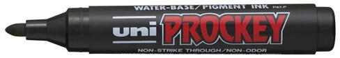 Uni PM-122 Prockey gömb hegyű fekete flipchart marker - Minden felületre író, vízbázisú pigmenttintás filctoll - Száradás után nem lemosható, UV- és víz-álló, az írás a papíron nem üt át - Ideális flipchart marker, szöveten az írásvonal határozott, nem fut szét - Kerek hegy - Írásvastagság: 1,2-1,8 mm - Szín: fekete