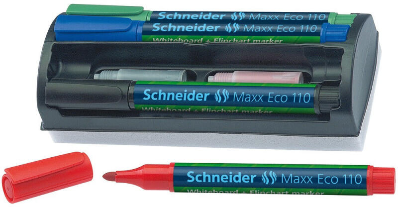 Kerek hegy, alkoholbázisú, vízálló és törlésbiztos, gyorsan szárad, kültéri használatra is alkalmas, kupak színe megegyezik a tinta színével. Katalóguskód: 36397 TÁBLA- ÉS FLIPCHART MARKER KÉSZLET 1-3 MM 4-ES KÉSZLET SZIVACCSAL SCHNEIDER MAXX ECO 110Gyártó : Schneider