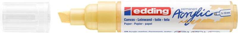 AKRIL MARKER 5-10 MM EDDING 5000 PASZTELL SÁRGA D5 Akril marker világos vagy sötét felületekre történő festéshez, ideális olyan anyagokhoz, mint a vászon vagy a festőpapír. - A vágott írócsúcs vonalvastagsága 5-10 mm. - A kiváló minőségű, pigmentált, vízbázisú akrilfesték száradás után rendkívül tartós, átlátszatlan, fényálló és szagtalan. - A neon sárga sz