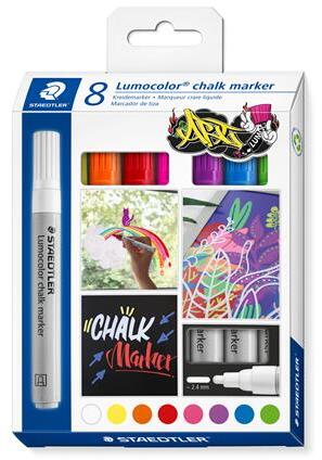 A Staedtler krétamarkerek mindig készen állnak az újabb ötletekre tükrökön, ablakokon, és még sok más felületen. -díszítéshez, íráshoz és tervezéshez sima felületeken, mint pl. (sötét) táblákon, üvegen, ablakon, tükrön stb. -jó fedőképesség -szinte szagtalan, vízbázisú folyékony kréta -nedves ruhával könnyen letörölhető szinte minden sima felületről -él