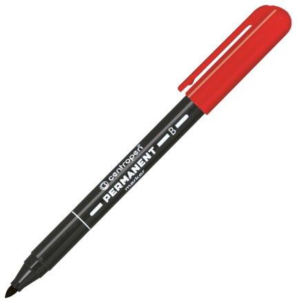 Állandó marker - piros. A legtöbb felületre ír - ír papírra, gumira, bőrre, műanyagokra, fémekre. Ellenáll a víznek, a kopásnak és az időjárási hatásoknak. Alkohol alapú tinta. Hengeres csúcs 2 mm-es lábnyomszélességgel.