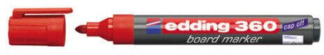 Táblamarker 1,5-3mm, kerek Edding 360 pirosGHS piktogram: Figyelmeztetés: VeszélyFigyelmeztető mondatok: H225 Fokozottan tűzveszélyes folyadék és gőz. H319 Súlyos szemirritációt okoz. Fehér táblára való írásra, rajzolásra alkalmas marker. "Cap-off" festékkel töltve, ezért néhány napig kupak nélkül sem szárad be. Az írás szárazon letörölhető. Kerekített csúccsal.