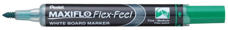 Táblamarker 1-5mm, hajlékonyhegyű, PENTEL Maxiflo Flex Feel zöld A Pentel Maxiflo Flex Feel táblafilc egy egyedülálló újdonság. Különlegessége a rugalmas kúpos hegy, mellye tetszés szerint variálható az írásvonal vastagsága 1mm és 5mm között. HASZNÁLJA AKÁR KALLIGRAFIKUS ÍRÁSRA! A Pentel Maxiflo táblafilc pumpás megoldásával kivédheti a gravitáció hatását, akár