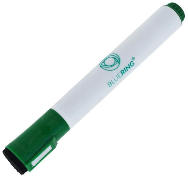 TÁBLAMARKER 3MM MÁGNESES, TÁBLATÖRLŐVEL MULTIFUNKCIÓS ZÖLD BLUERING Multifunkciós táblamarker fehértáblára való írásra, rajzolásra. Speciális festékanyagának köszönhetően néhány napig kupak nélkül sem szárad be. A markeren elhelyezett mágnes révén acél táblafelületeken rögzíthető. Az írás szárazon letörölhető, melyet a markeren található táblatörlő ko
