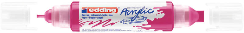 AKRIL MARKER 2-3MM ÉS 5-10MM 3D KÉTVÉGŰ EDDING 5400 MAGENTA Kétoldalú edding 3D akril tubus egyedi effektusokhoz és sötét és világos felületekre történő festéshez, ideális olyan anyagokhoz, mint a vászon vagy a festőpapír. - A kétoldalú tubus két különböző írócsúccsal rendelkezik 2 - 3 mm és 5 - 10 mm vonalvastagságban. - A kiváló minőségű, pigmentált, vízbá