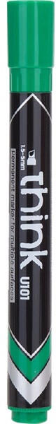 Deli Think 1,5-5,0 mm zöld vágott hegyű permanent marker DELI "Think" 1,5-5,0 mm, vízálló, lélegző kupakkal ellátott, vágott hegyű, zöld alkoholos marker