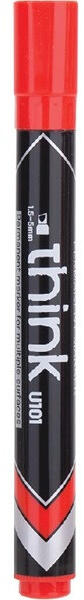 Deli Think 1,5-5,0 mm piros vágott hegyű permanent marker DELI "Think" 1,5-5,0 mm, vízálló, lélegző kupakkal ellátott, vágott hegyű, piros alkoholos marker