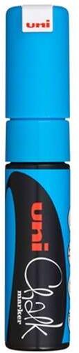 Krétamarker UNI-BALL PWE-8K 8mm vágott hegyű v. kék Írószerek UNI-BALL PWE-8K L. BLUE - vízbázisú krétamarker - száradás után vízálló, de nedves törlőkendővel könnyen eltávolítható - üvegen, sima, nem porózusos felületeken, világító táblán, fluo színeivel figyelemfelhívó írás, rajzolat készíthető - használható üvegre, fémre, procelánra - használata nem