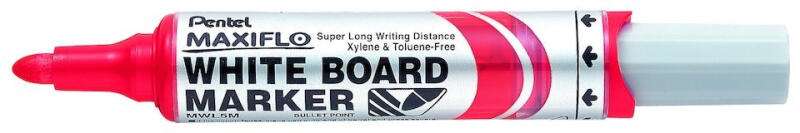 Táblamarker 2,5 mm, kerek, PENTEL MAXIFLO piros Professzionális társ a konferenciateremben, tanteremben. A Pentel Maxiflo táblafilccel nem lehet kizökkenni az írásból. A pumpás megoldással kivédheti a gravitáció hatását, akár fejjel lefelé is írhat. Csak nyomja meg a marker végében található gombot és írjon háromszor tovább, mint egy átlagos táblafilccel. Messziről is