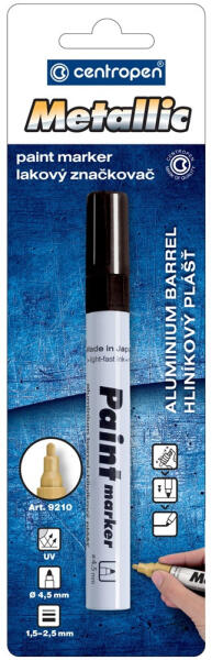 LAKKMARKER 1,5-2,5MM, KEREK HEGY CENTROPEN 9210 FEKETE Univerzális marker, kerek hegy, 1,5-2,5mm írásvastagság, porózus és nem porózus felületeken is ír. Száradás után víz -, kopás - és időjárásálló. Katalóguskód: 53491