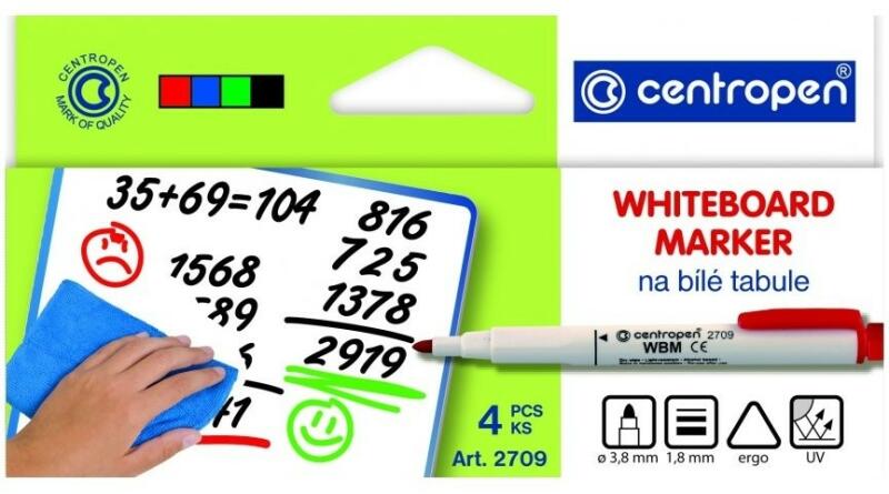 Fehér speciális táblákra történő íráshoz tervezték. Világos, nem veszélyes, szárazon törölhető tintával van feltöltve. A vágány szélessége 1,8 mm, vízszintes helyzetben tárolja.