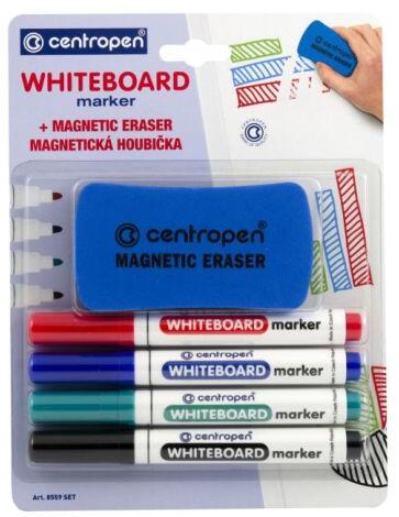 Fényálló marker, amely száradás után törölhető. 4 darabos készlet spatulával. Alkalmas fehér zománcozott táblákhoz, PVC-hez, üveghez, porcelánhoz. Kerek hegy 5 mm vastag. Nyomtáv 2,5 mm. Szín: mix Nyomszélesség: 2,5 mm Tipp típusa: kerek