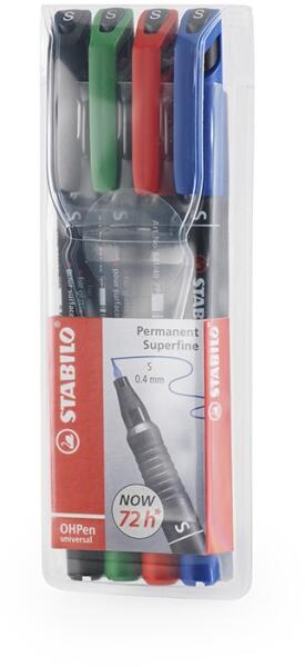 PERMANENT MARKER KÉSZLET 0,4MM, STABILO OHPEN S, 4 KLF. SZÍN