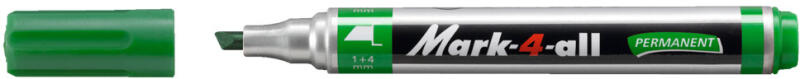PERMANENT MARKER 1-4MM, VÁGOTT S STABILO MARK-4-ALL 653/36 ZÖLD Vágott hegyű alkoholos marker, majdnem minden felületre ír. Hosszú nyitvatarthatósági idő. Hegy vastagság: 1-4 mm. 10db/dob Katalóguskód: 33974