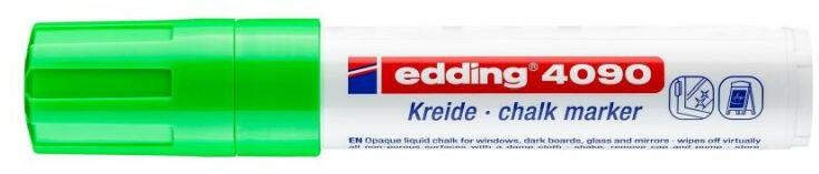 Táblára használható krétamarker. Letörölhető folyékony kréta. Üvegfelületek, ablakok, sötét színű táblák, műanyag felületek és tükrök feliratozására, díszítésére alkalmas vízbázisú marker. Nedves kendővel vagy szivaccsal eltávolítható. Vágott csúccsal. Vonalvastagság: 4-15 mm. Az Edding Németország piacvezető rostirón márkája, amely változatosságot é