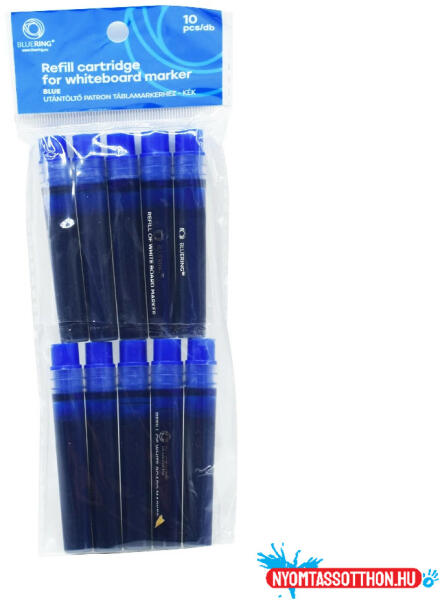 Utántöltő patron cserélhető betétes táblamarkerhez Bluering kék Bluering táblamarkerhez utántöltő patron. Csak egyszerűen tolja be a szétcsavart marker testbe és zárja vissza ellentétes irányba. Katalóguskód: 50330