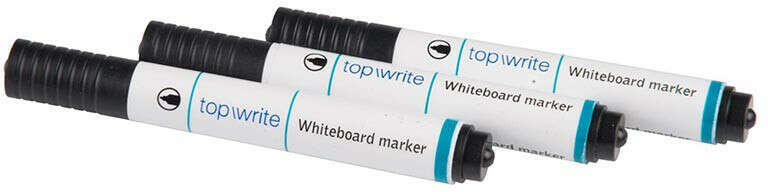 Topwrite - Dry Erase tábla jelölő 3 db. (Fekete)Három fekete, szárazon törölhető táblajelző készlet. A markerek intenzív és tartós színekkel rendelkeznek, amelyek könnyen eltávolíthatók a szárazon törölhető tábla felületéről. Termékjellemzők: - Intenzív és hosszantartó színek - Könnyen eltávolítható a száraz törlőtábla felületéről - A készlet 3 jelölő