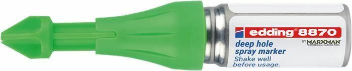 Folyékony kréta spray szabadalmaztatott pumpás mechanizmussal nem permanens jelölésre nehezen hozzáférhetõ helyeken, szinte minden anyagon. -egyedi formájú fúvókája 50 mm mélységű és 3-13 mm átmérõjű furatok jelölését teszi lehetõvé -bármilyen szögbõl és magasságból használható, akár fej fölött is -a nem tartós folyékony kréta nem nedvszívó felületekrõl