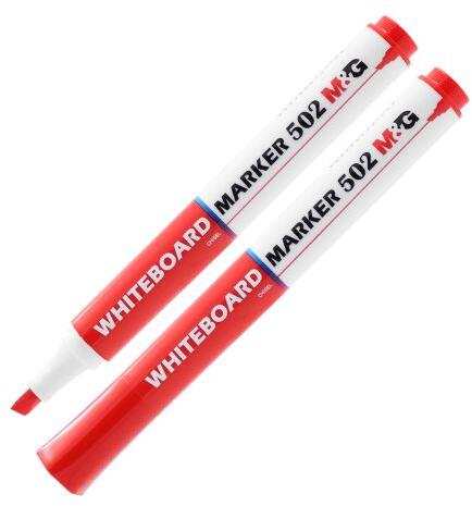A piros színű Marker 502 ideális táblákra és más nem porózus felületekre. - világos, vastag vonalak, amelyek könnyen olvashatók - ékvég - száraz kenés