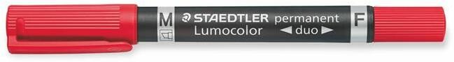 A Lumocolor termékcsalád alkoholos markerei igazán intenzív színeket biztosítanak a tartós jelöléshez gyakorlatilag bármilyen felületen. -kétvégű marker könnyen kezelhetõ méretben -kiváló vízálló tulajdonságú és nem kenõdik el -másodpercek alatt szárad, így balkezeseknek is ajánlott -intenzív színek -enyhe illatú -a fekete szín fényálló -PP tolltest és kupak g
