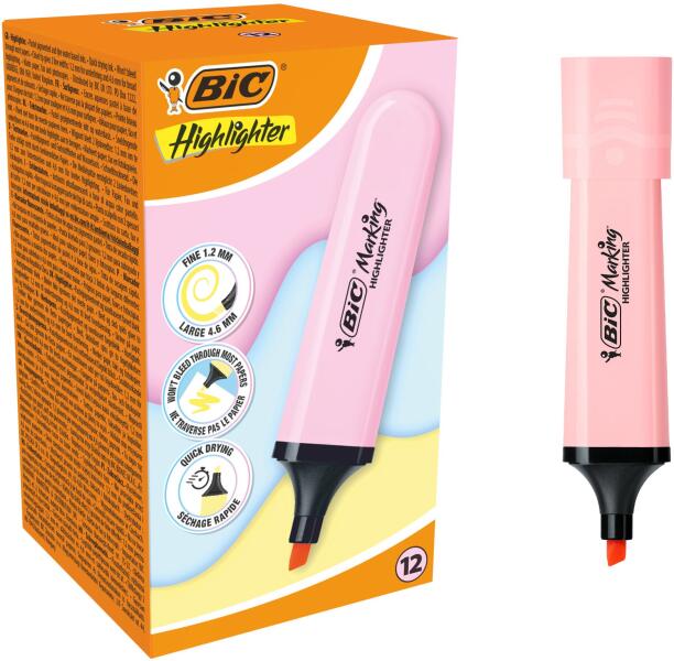 Megjegyzés: Ez a leírás automatikusan le lett fordítva magyarra. Highlighter Lapos rózsaszín pasztell szabású/12 Válogatott BIC Flat szövegkiemelők, amelyek élénk színekkel emelik ki a főbb ötleteket. Ez a megbízható, univerzális szövegkiemelő ferde heggyel állítható szélességgel rendelkezik: egyszerűen döntse meg egy irányba a vastag, 4,6 mm-es kiemeléshez, és óvat