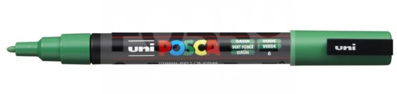 UNI POSCA PC-3M ZÖLD színű kúpos hegyű dekormarker-filctoll (0.9-1.3 mm) - 14156U Kiváló minőségű, erős heggyel rendelkező akril dekormarker . Használható szinte bármilyen felületen legyen az fa, fém, papír, üveg, textil, kő, műanyag. . Az Uni Posca filctollak különleges finomságú akrilfestéket tartalmaznak. A Posca akril filcek színezésre és rajzolásra is alkalmasak.