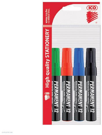 Műanyag, üveg, fém, fa, illetve szinte minden felület feliratozására, jelölésére alkalmas, alkoholbázisú festékkel töltött permanent marker. Írásképe száradás után törlés- és vízálló. Vágott csúccsal, 4 alapszínben. Vonalvastagság: 1-4 mm. .