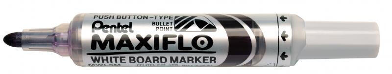 A Pentel Maxiflo táblafilc tökéletes társ a konferenciatermekben és tantermekben. A fejlett pumpás technológiának köszönhetően a gravitáció sem állhat az írás útjába – akár fejjel lefelé is írhatsz ! Egyszerűen nyomd meg a marker végében található gombot, és élvezd az akár háromszor hosszabb írási időt, mint egy átlagos táblafilccel. A Pentel Maxiflo táblafilc